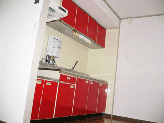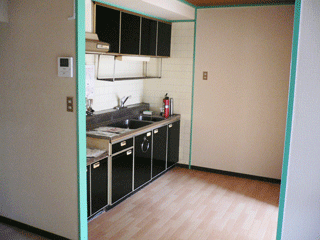 カッティングシート貼り : 2部屋分のキッチン