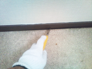 剥がれ残りはヘラなどでこそぎ取って、床面は平らにします。