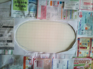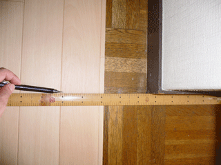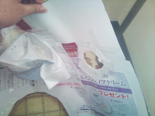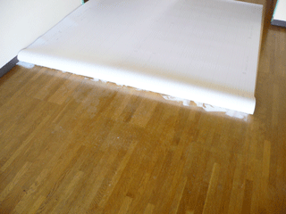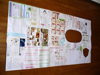 新聞チラシ等を床に敷き詰めてセロハンテープで貼りつけ、床の型をとります。