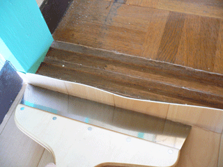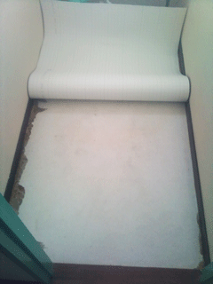 クッションフロアシートを位置に合わせて仮置きします。まだ、糊づけはしません。