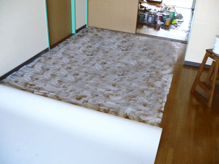クッションフロアシートを床に糊づけしていきます。