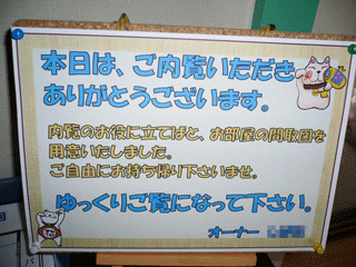 併せて間取り図を「ご自由にお持ち帰り下さい」と添えてます。