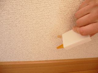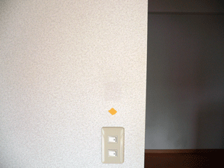 技術的には簡単な作業なのだが、既設の壁紙と同じ補修用壁紙を